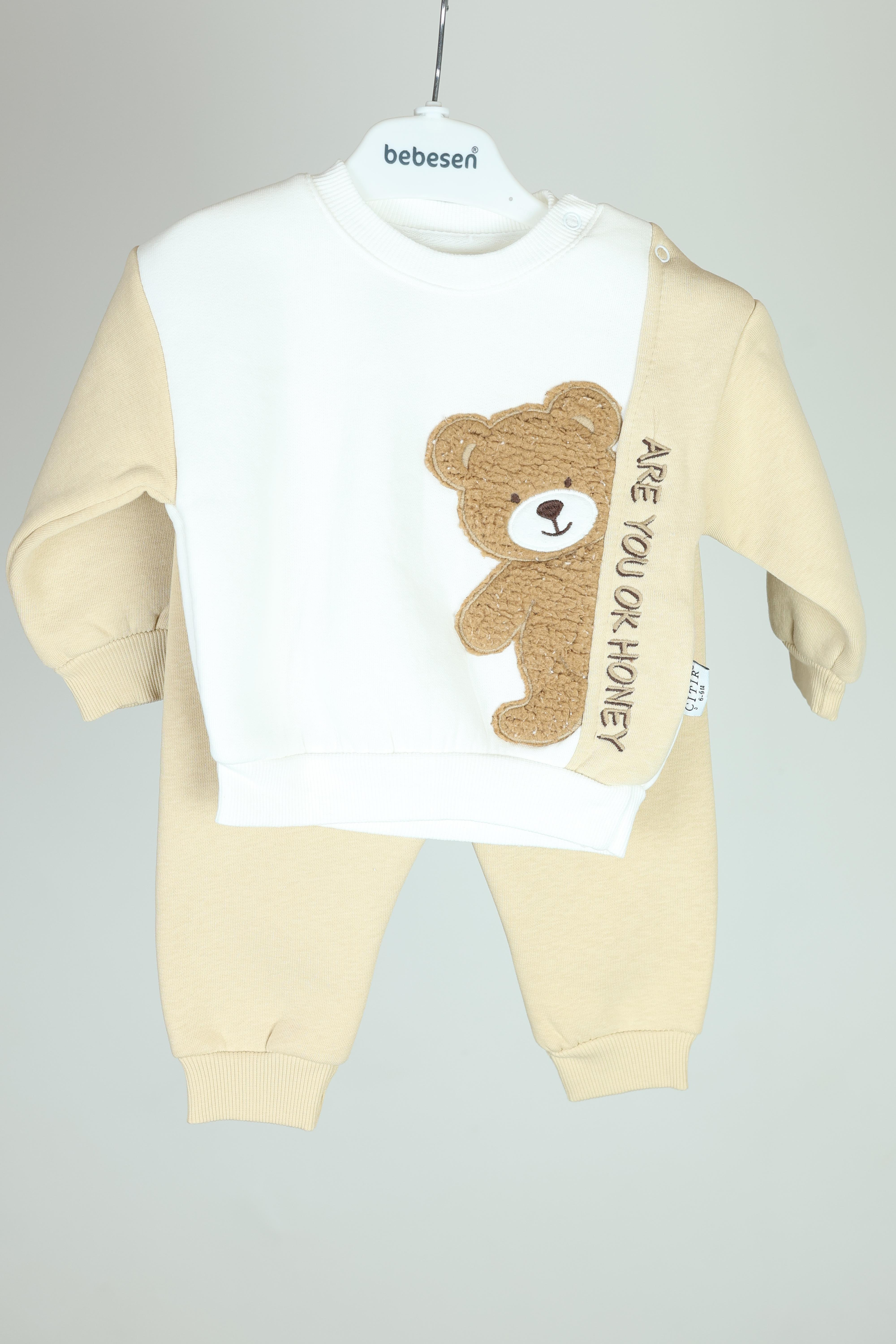 Ayıcık Nakışlı Bebek İkili Takım - 6-18 Ay - Kahverengi (7199-5)