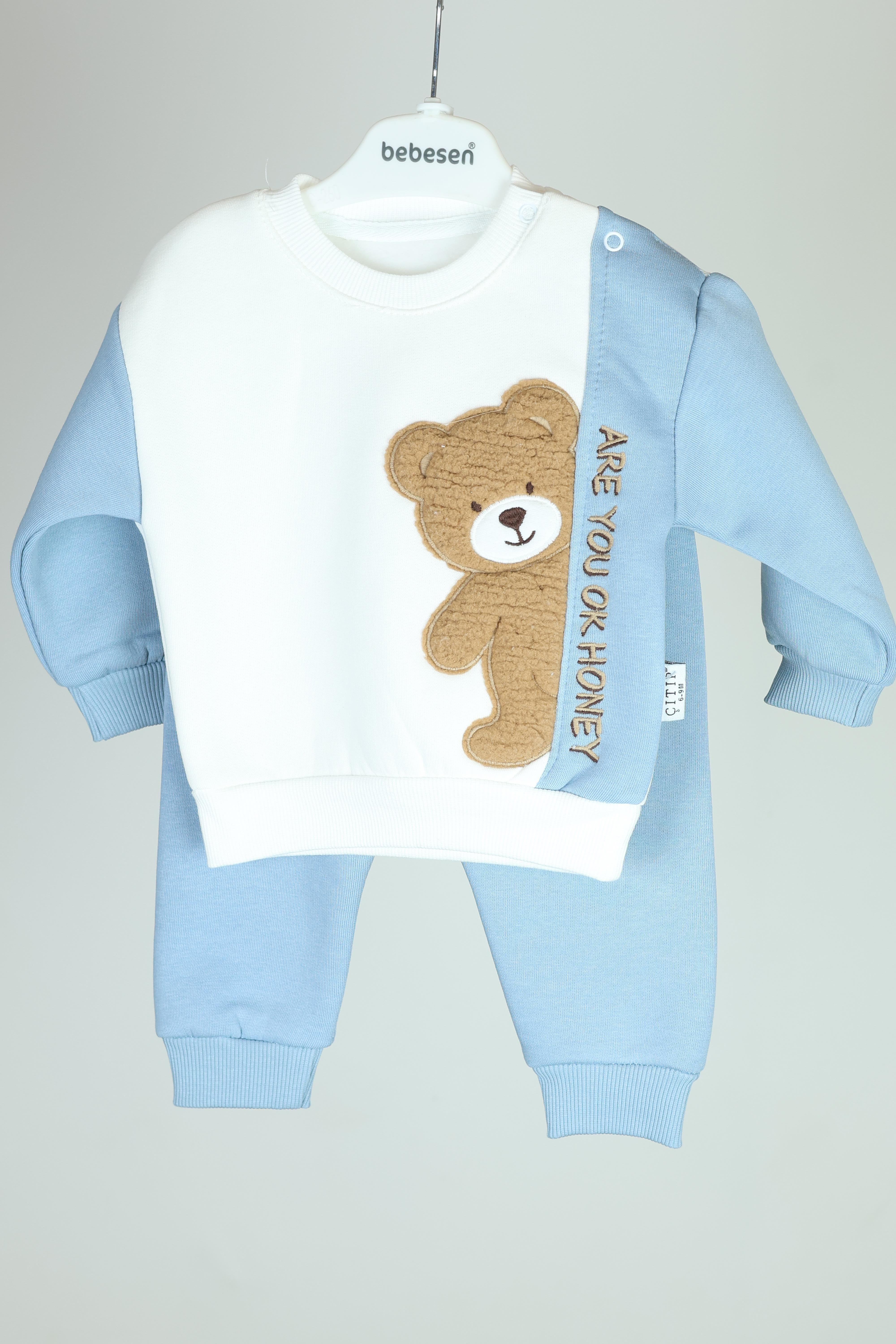 Ayıcık Nakışlı Bebek İkili Takım - 6-18 Ay - Mavi