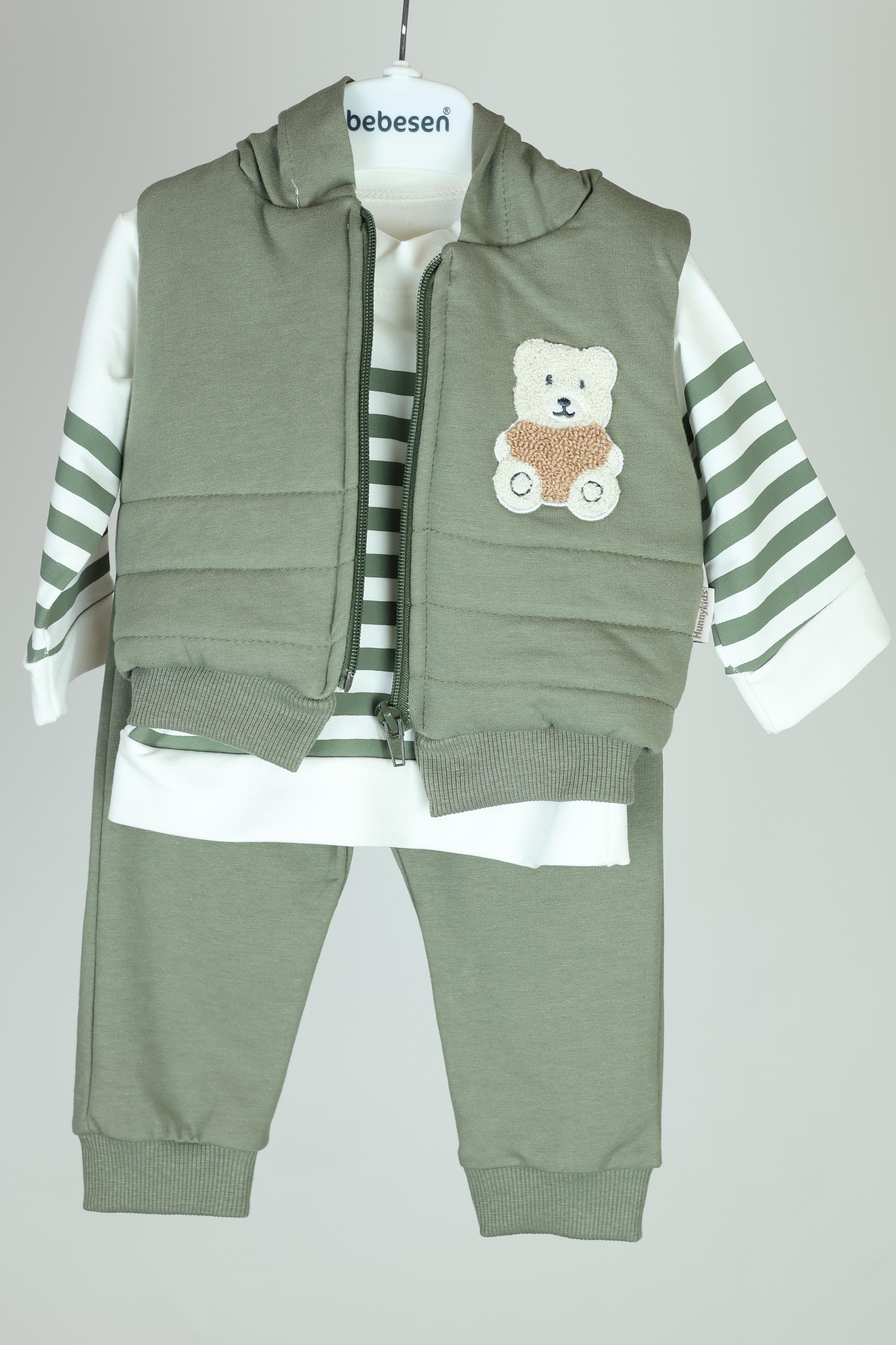 Erkek BebekAyıcık Nakışlı Bebek Üçlü Takım - 9-18 Ay - Yeşil