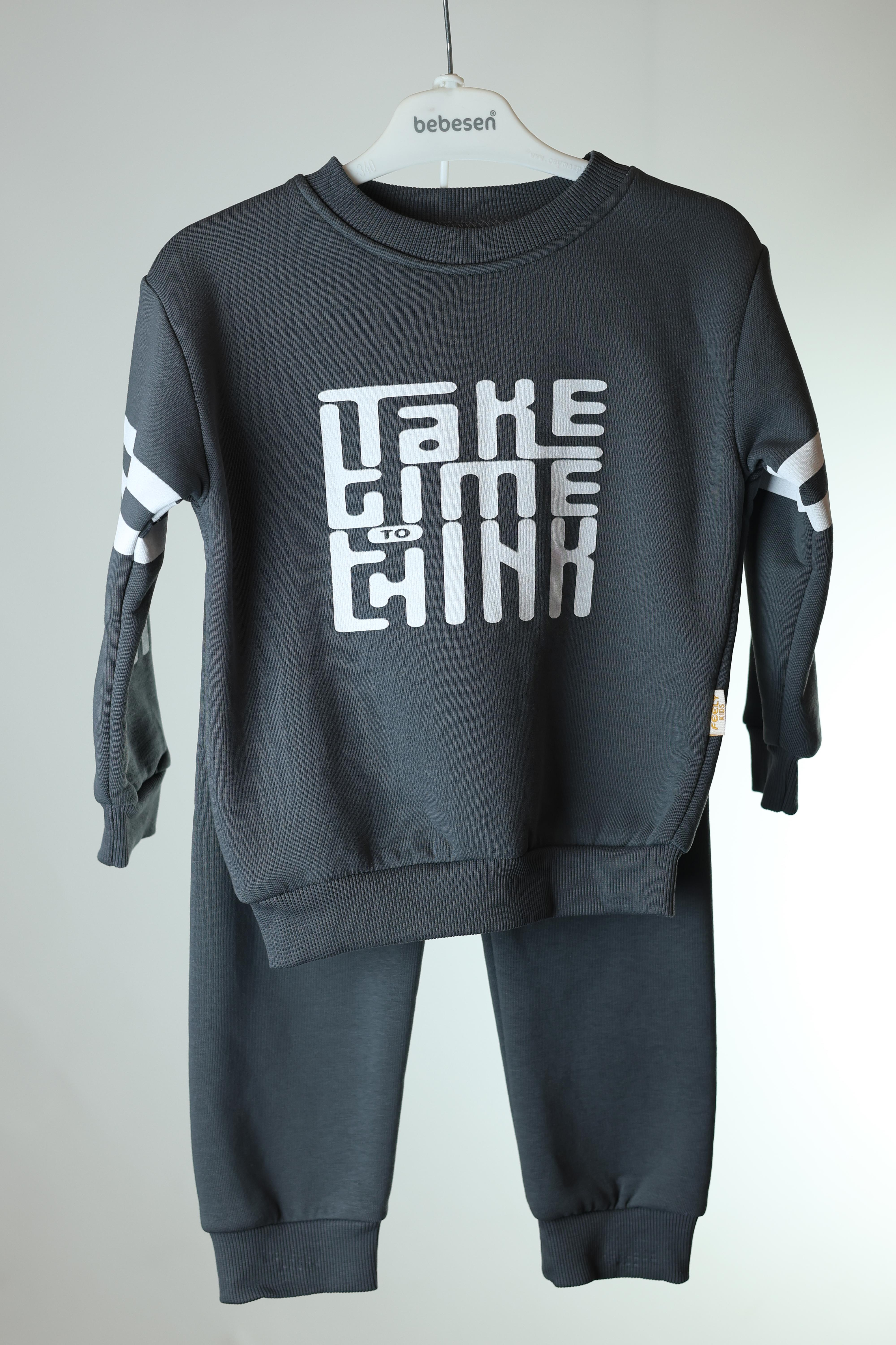 Erkek ÇocukBaskılı Uzun Kollu Erkek İkili Takım - 2-5 Yaş - Antrasit Gri