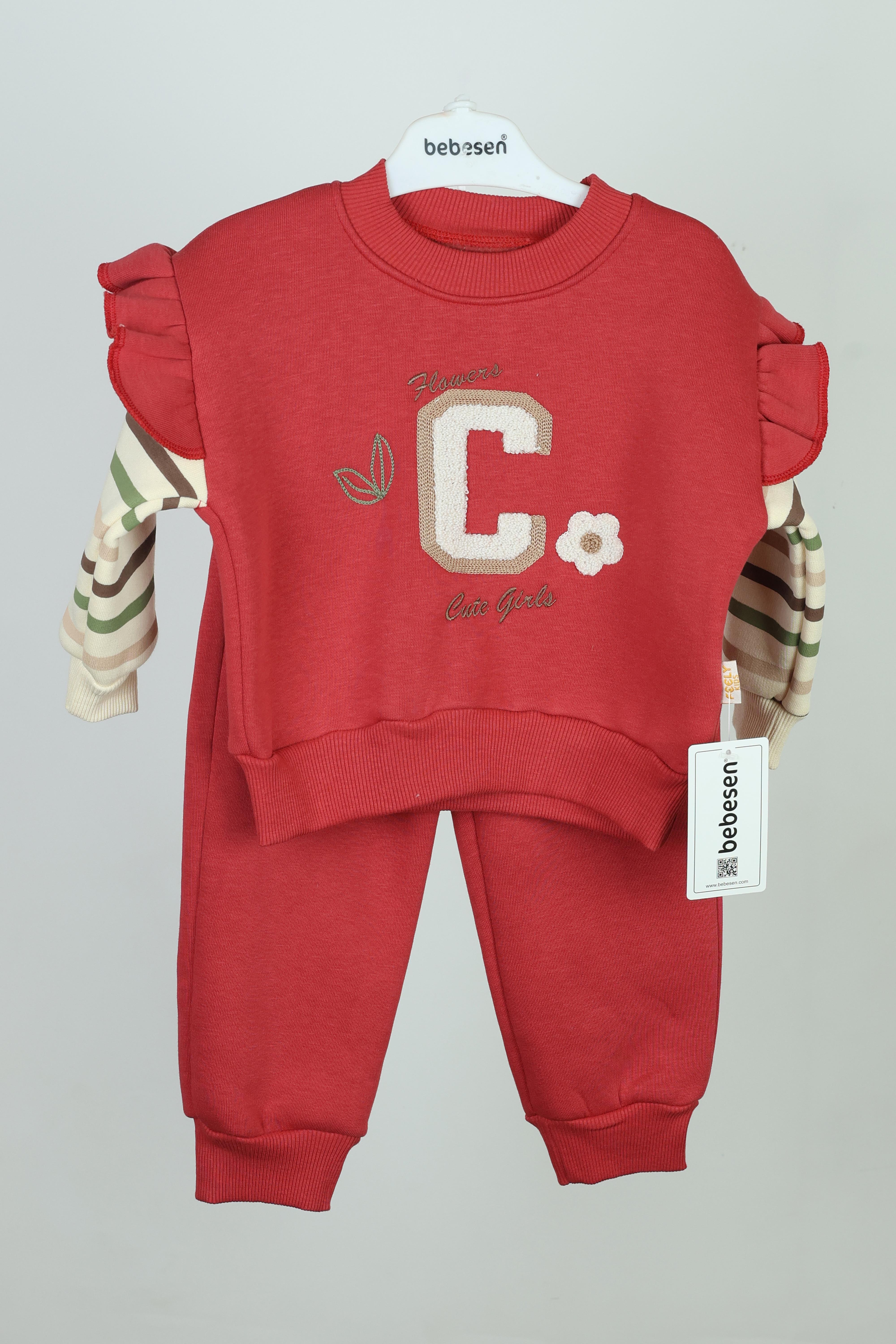 C Harfli Nakışlı Bebek İkili Takım - 9-24 AY - Kırmızı (1395-5)