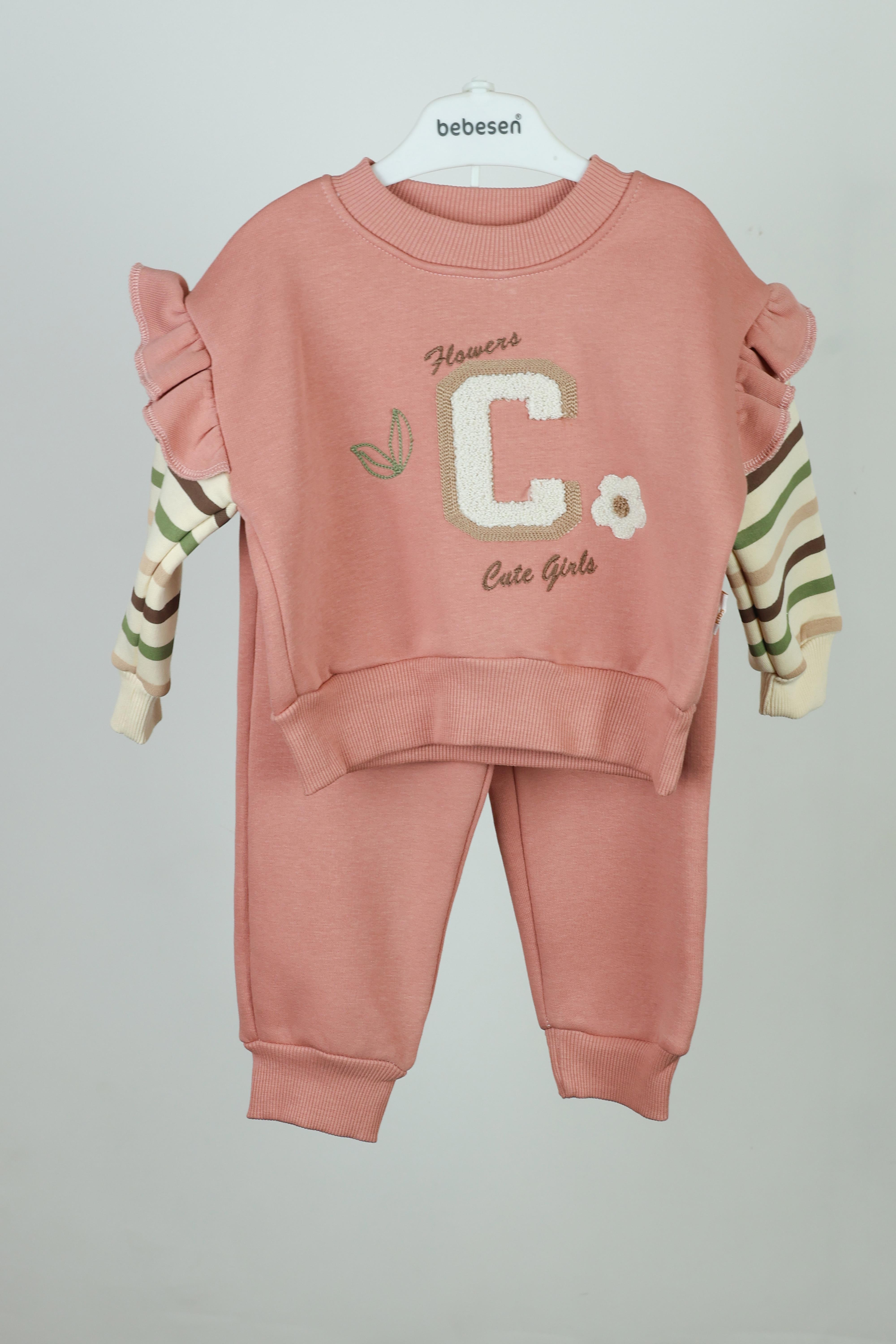 C Harfli Nakışlı Bebek İkili Takım - 9-24 AY - Pembe (1395-5)