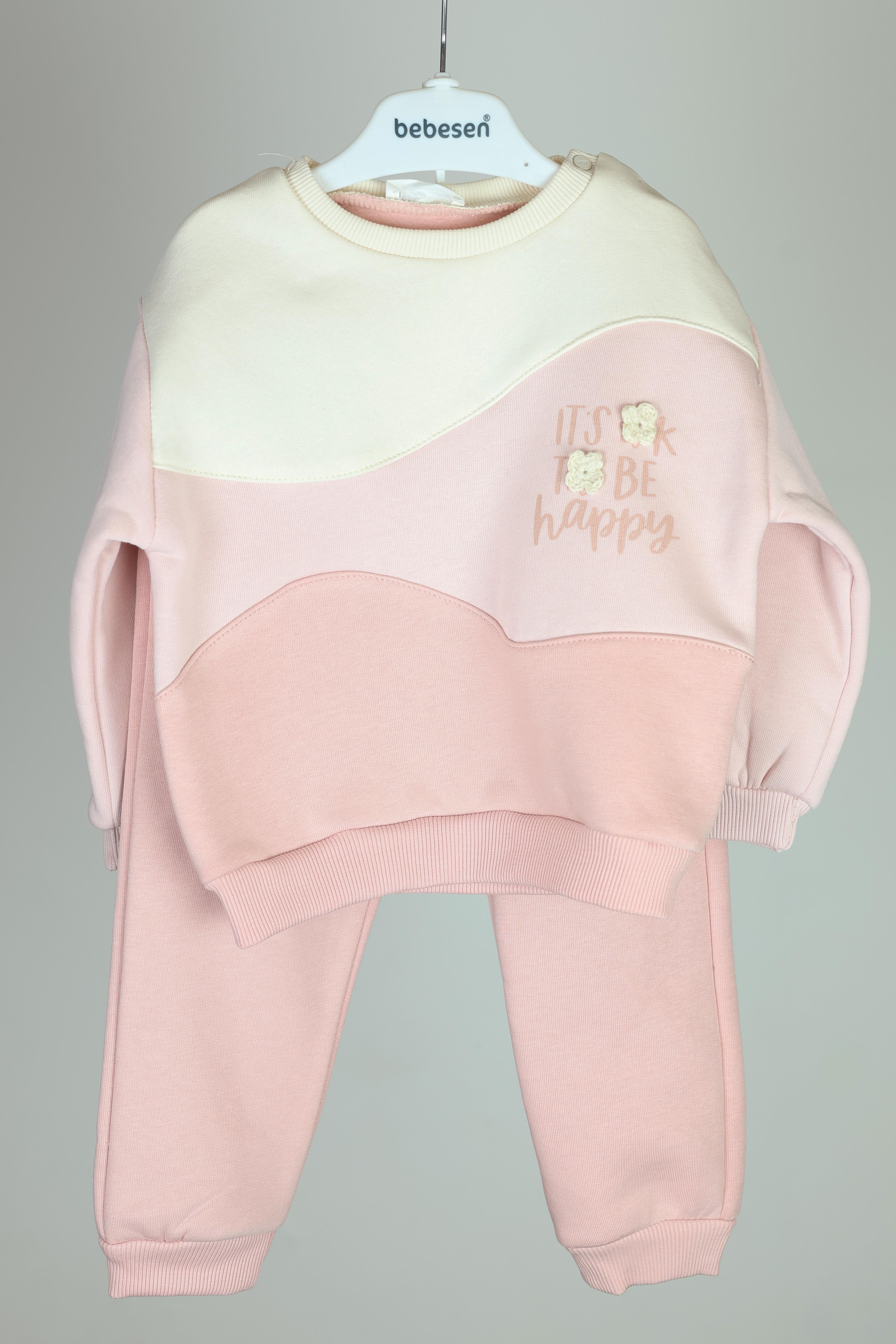 Çiçek Nakışlı Bebek İkili Takım - 6-24 Ay - Pembe