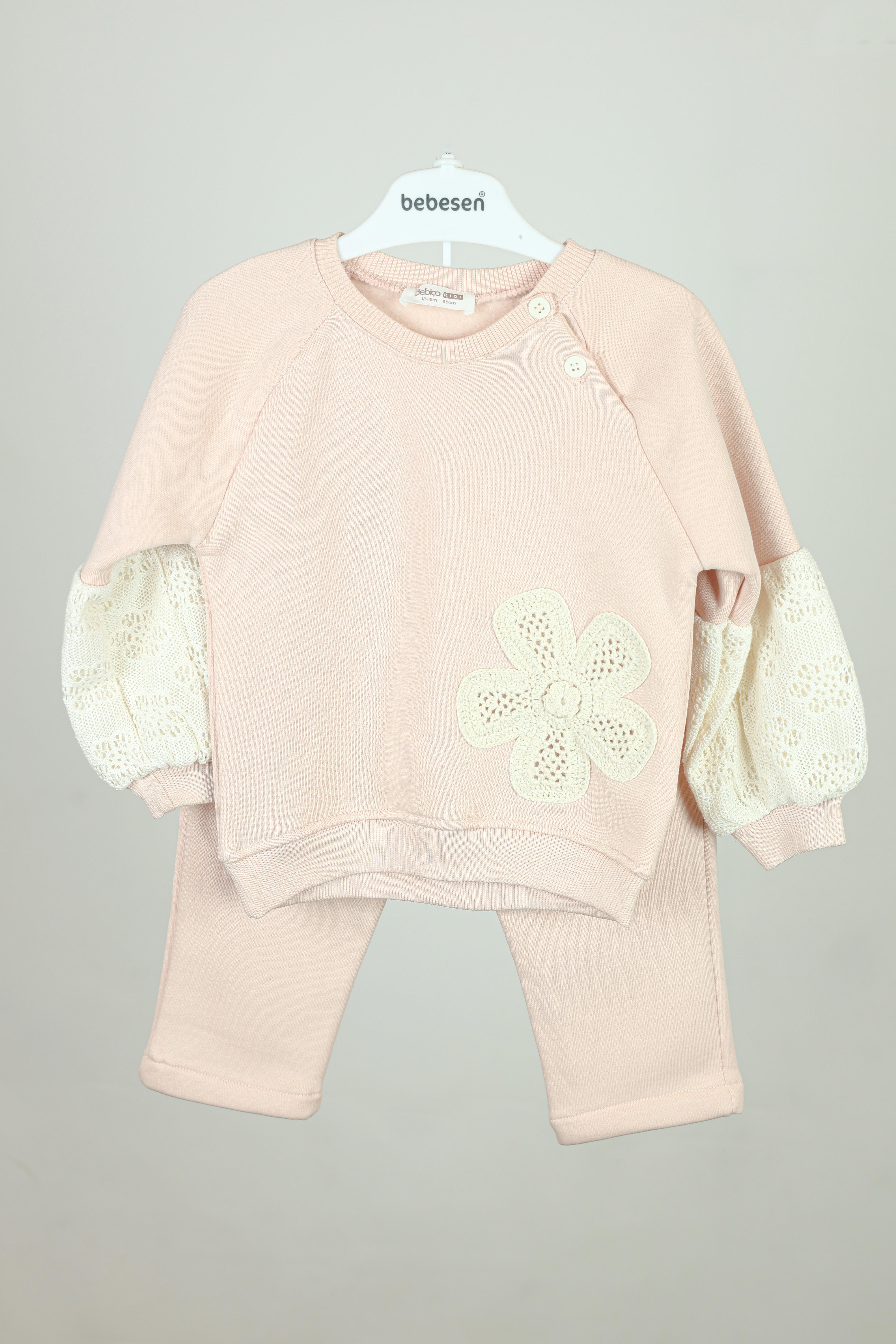 Çiçek Nakışlı Kız Bebek Takım - 6-24 AY - Pembe