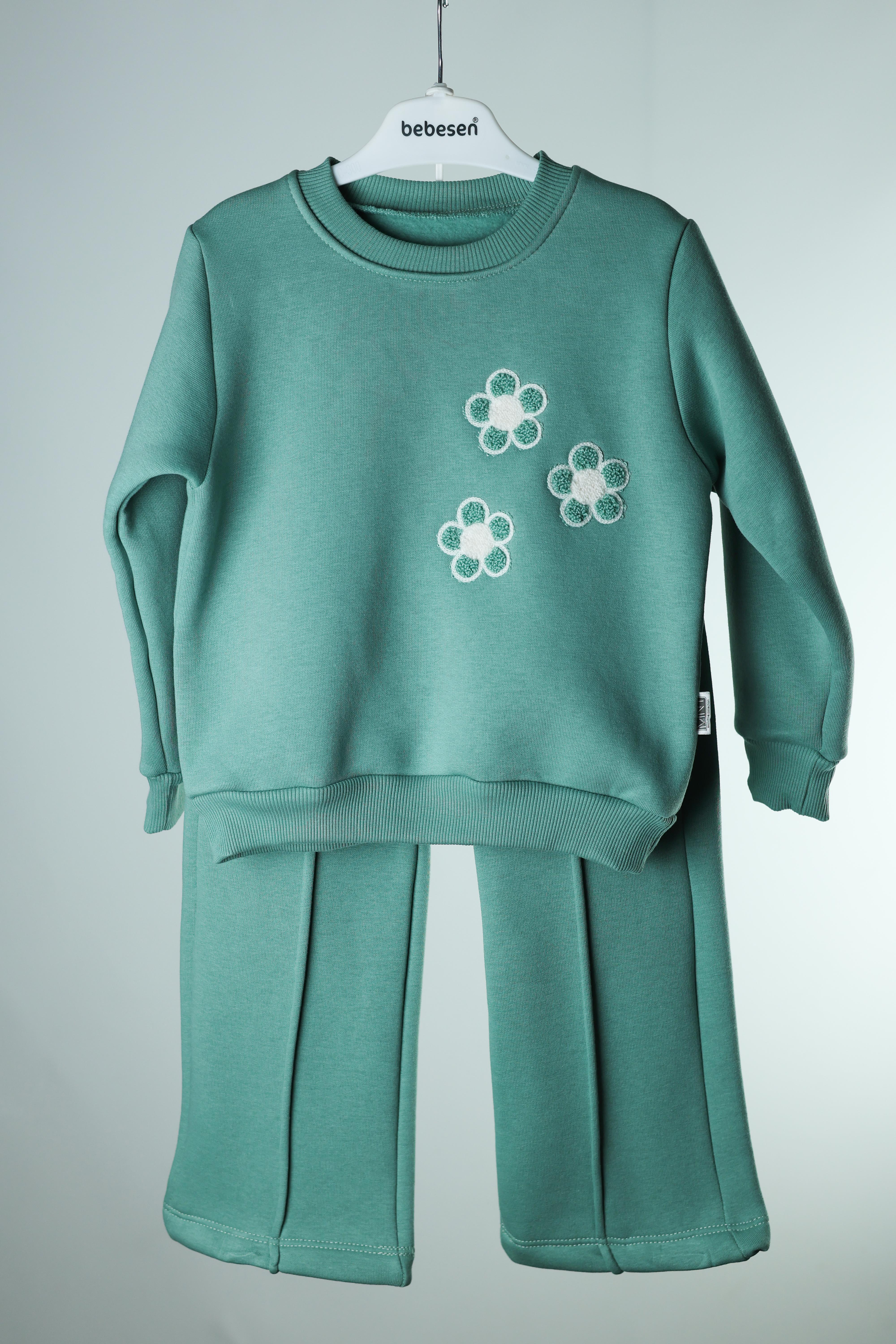Çiçek Nakışlı Kız İkili Takım - 2-5 Yaş - Yeşil (2228-5)