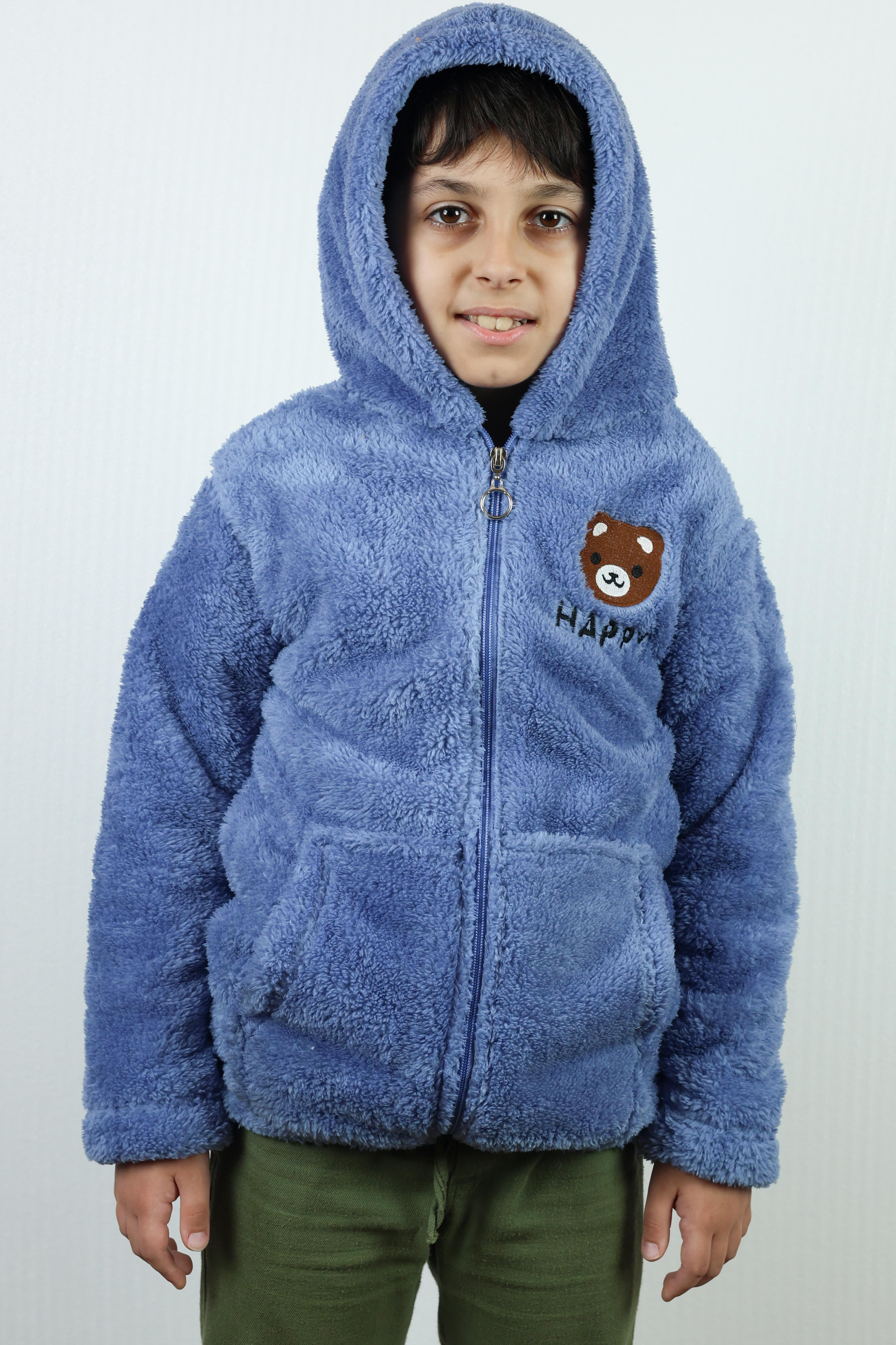 Erkek ÇocukHappy Ayıcık Baskılı Peluş Mont - Mavi