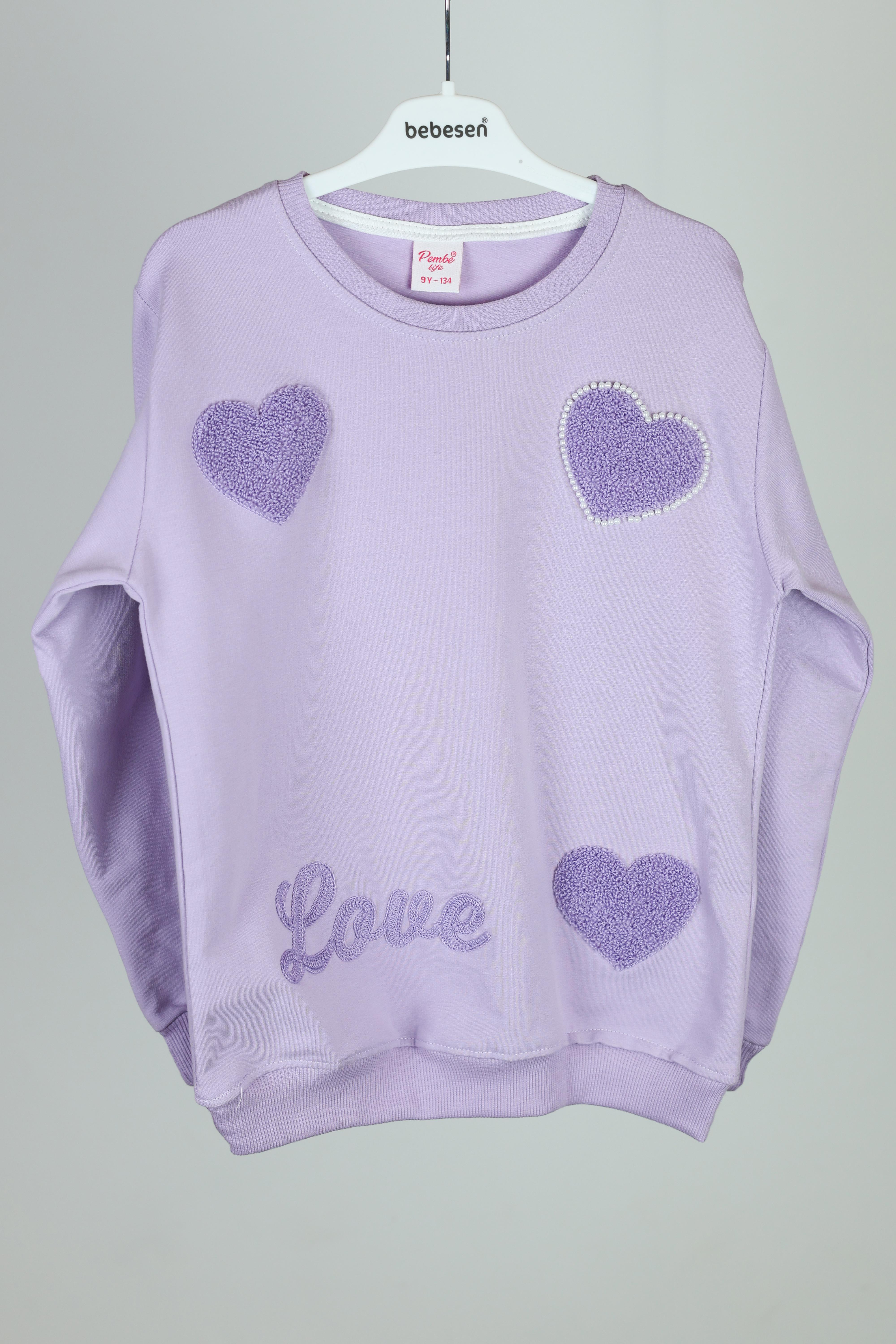 Kalp Nakışlı Kız Sweatshirt – 5-8 Yaş – Mor (2809-5)