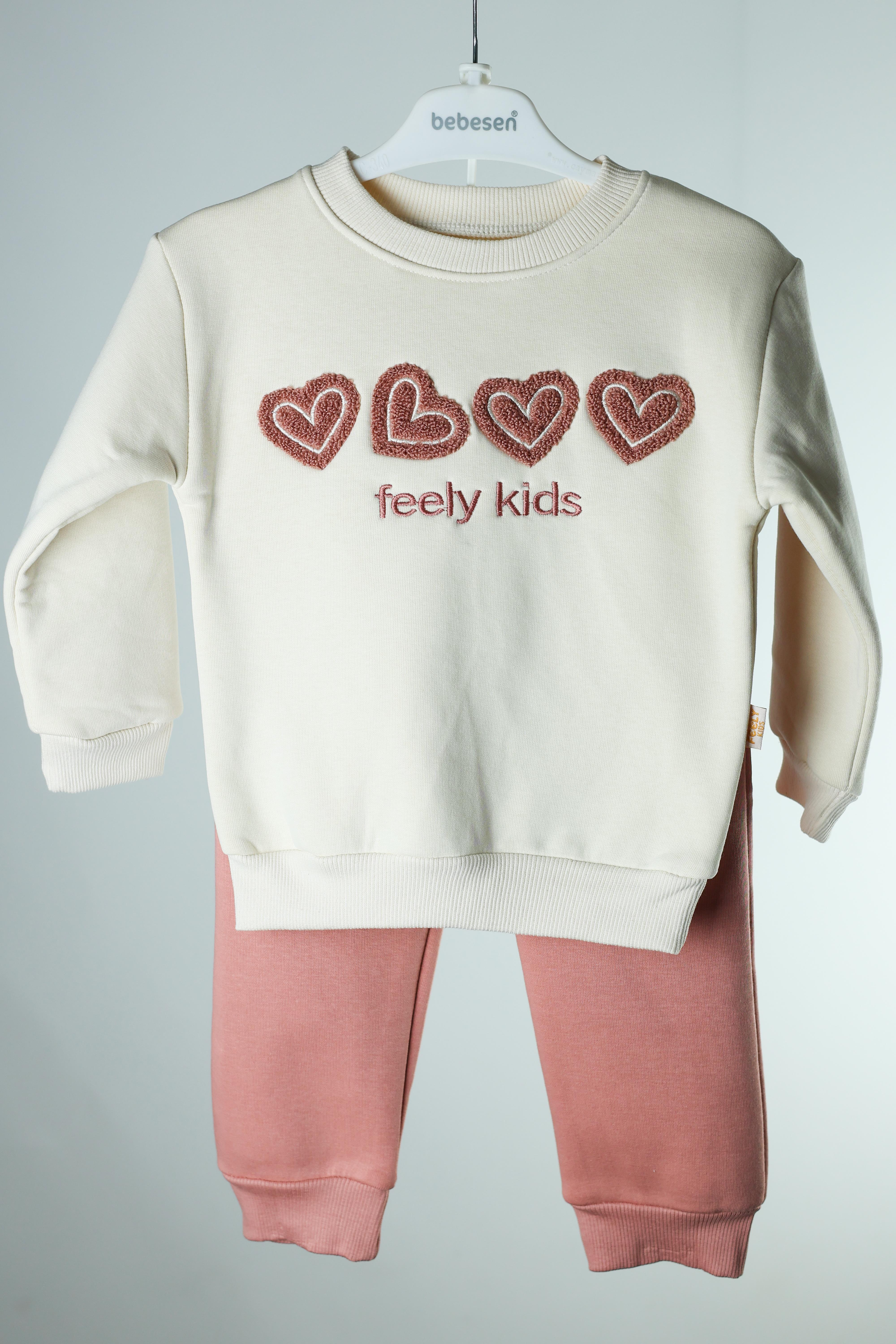 Kız ÇocukKalpli Nakışlı Kız İkili Takım - 2-5 Yaş - Gül Kurusu