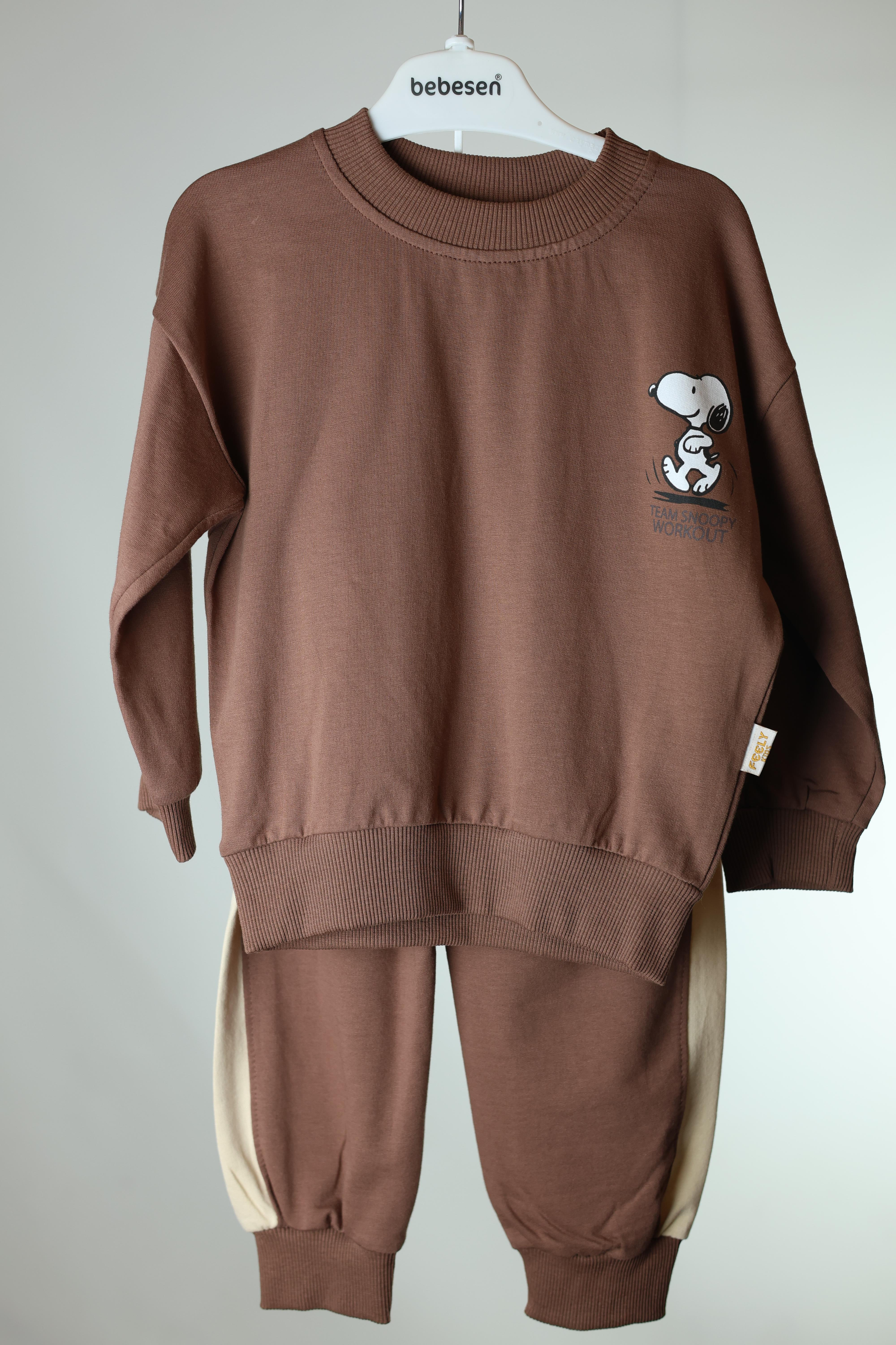 Karakter Baskılı Uzun Kollu Erkek İkili Takım - 3-6 Yaş - Kahverengi