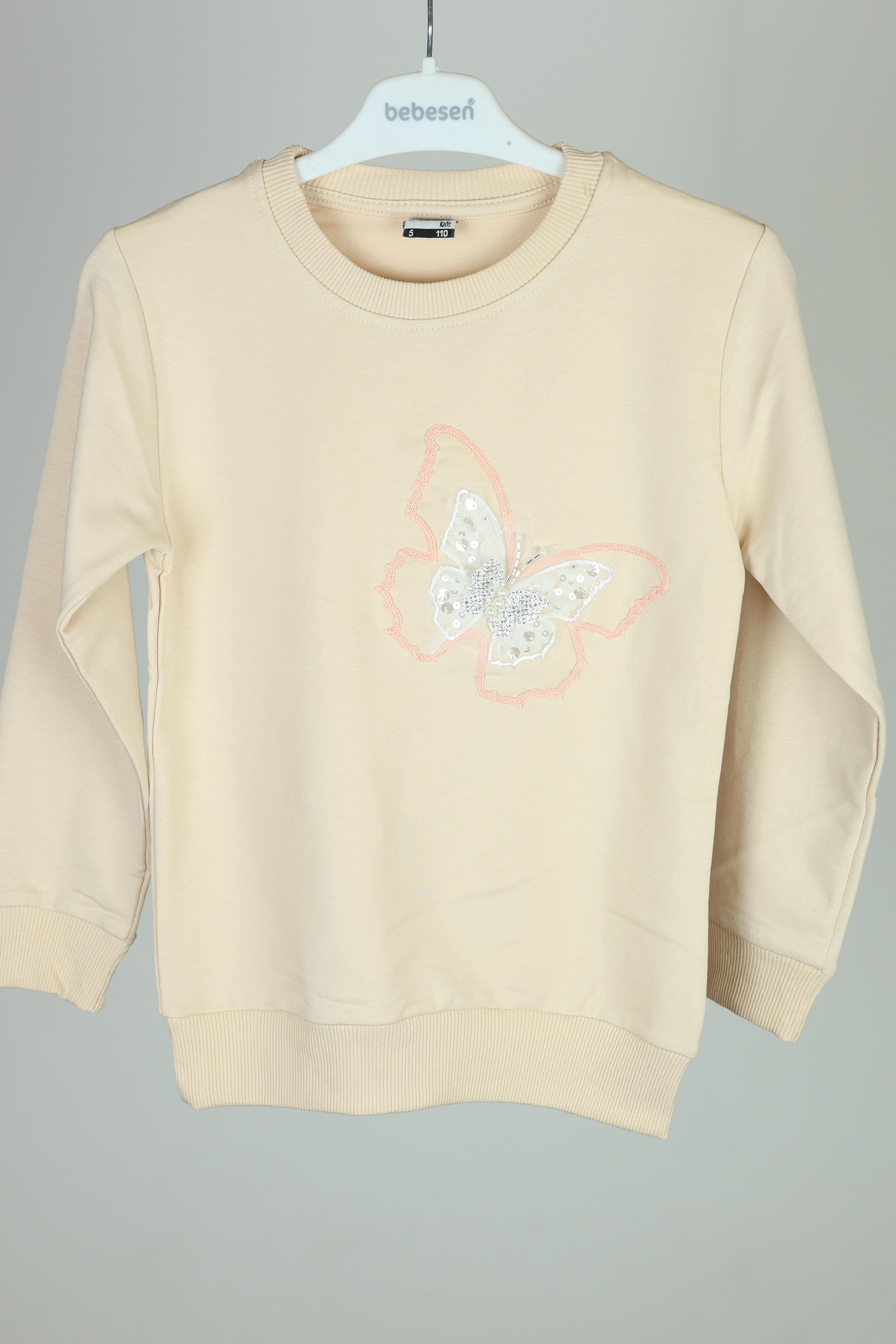 Kelebek Nakışlı Boncuklu Kız Sweatshirt – 5-8 Yaş – Krem (2118-5)