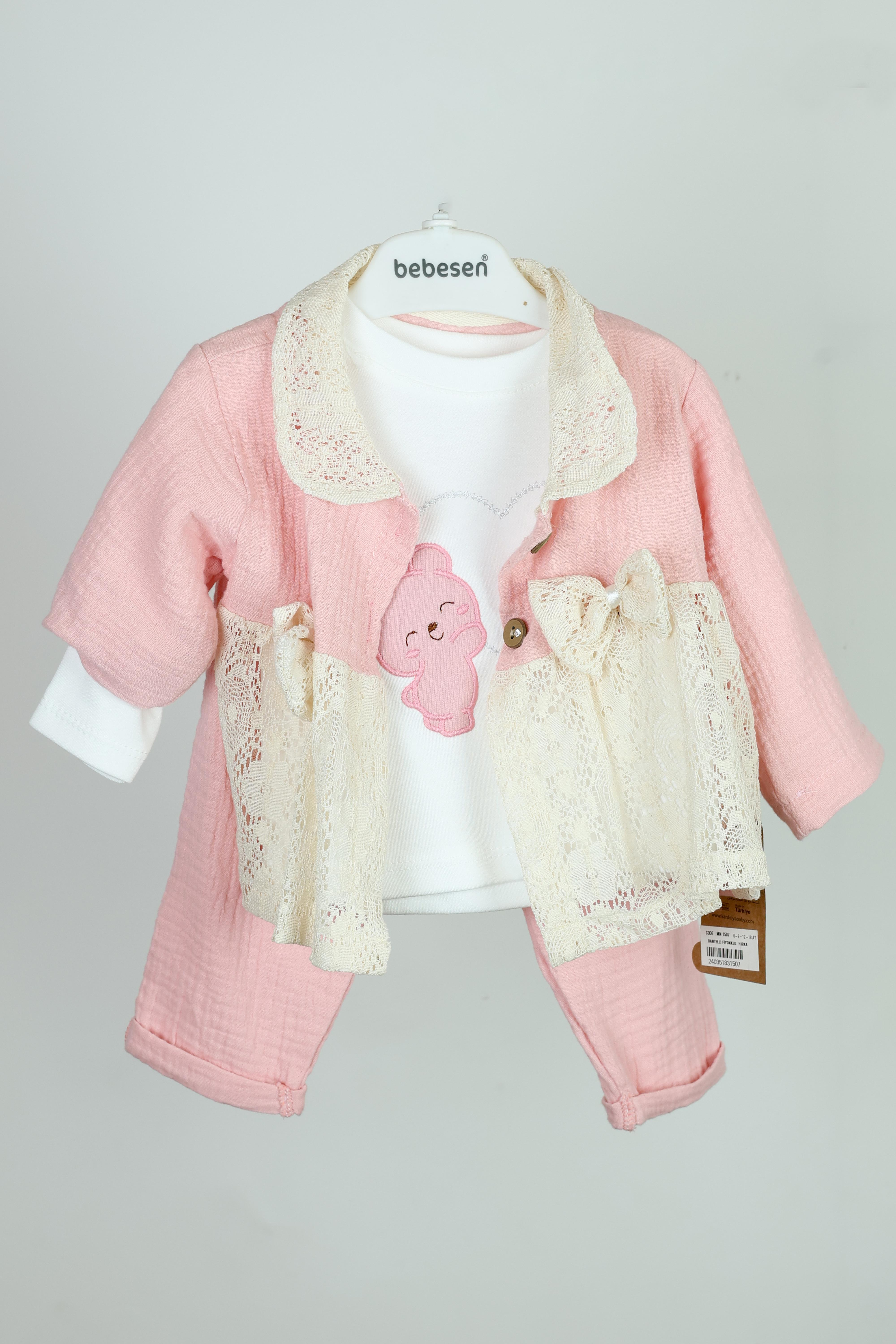 Kurdeleli Kız Bebek Takım - 6-18 AY - Pembe (1507-5)
