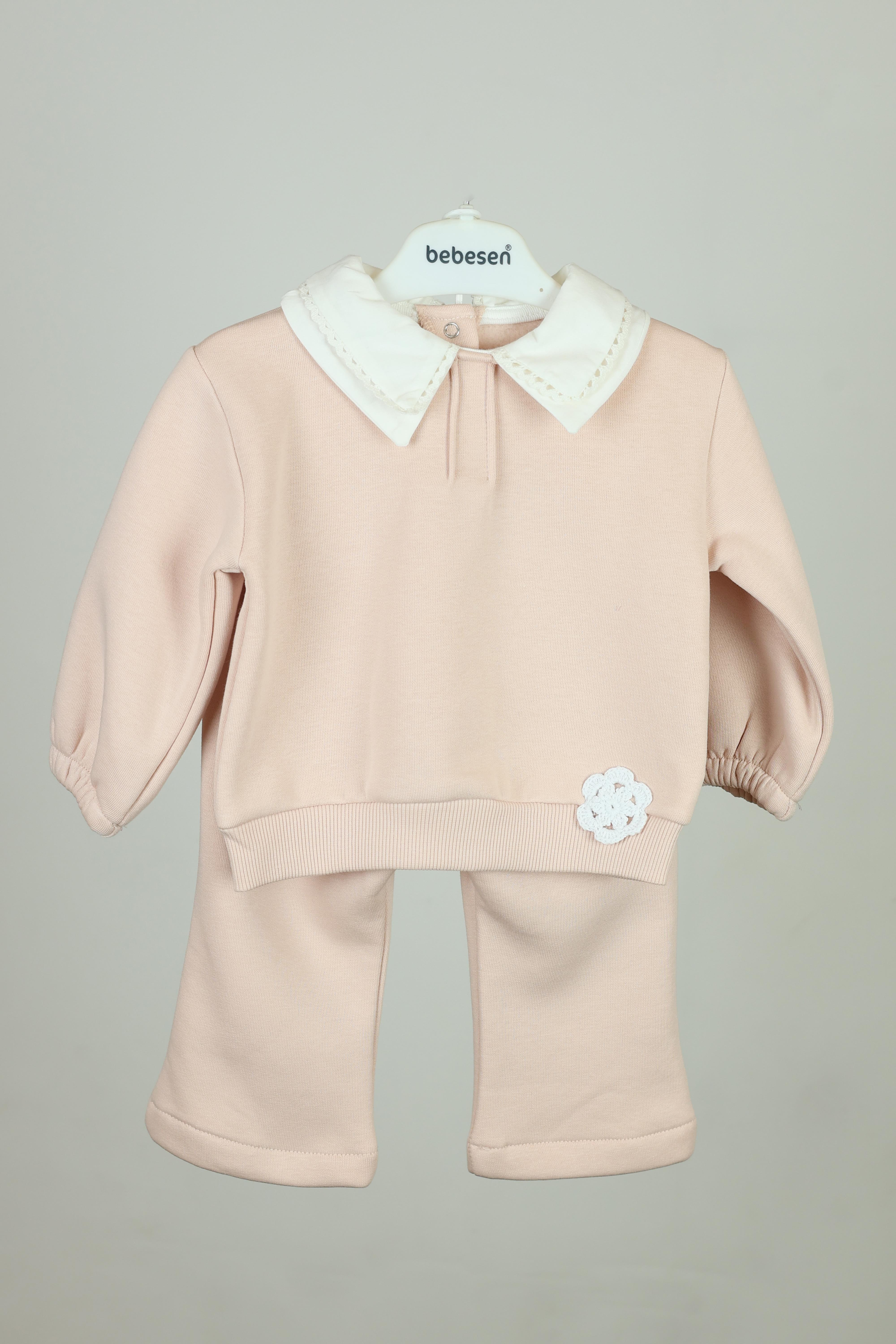 Kız BebekNakışlı Önlük Yaka Kız Bebek Takım - 6-24 AY - Pembe