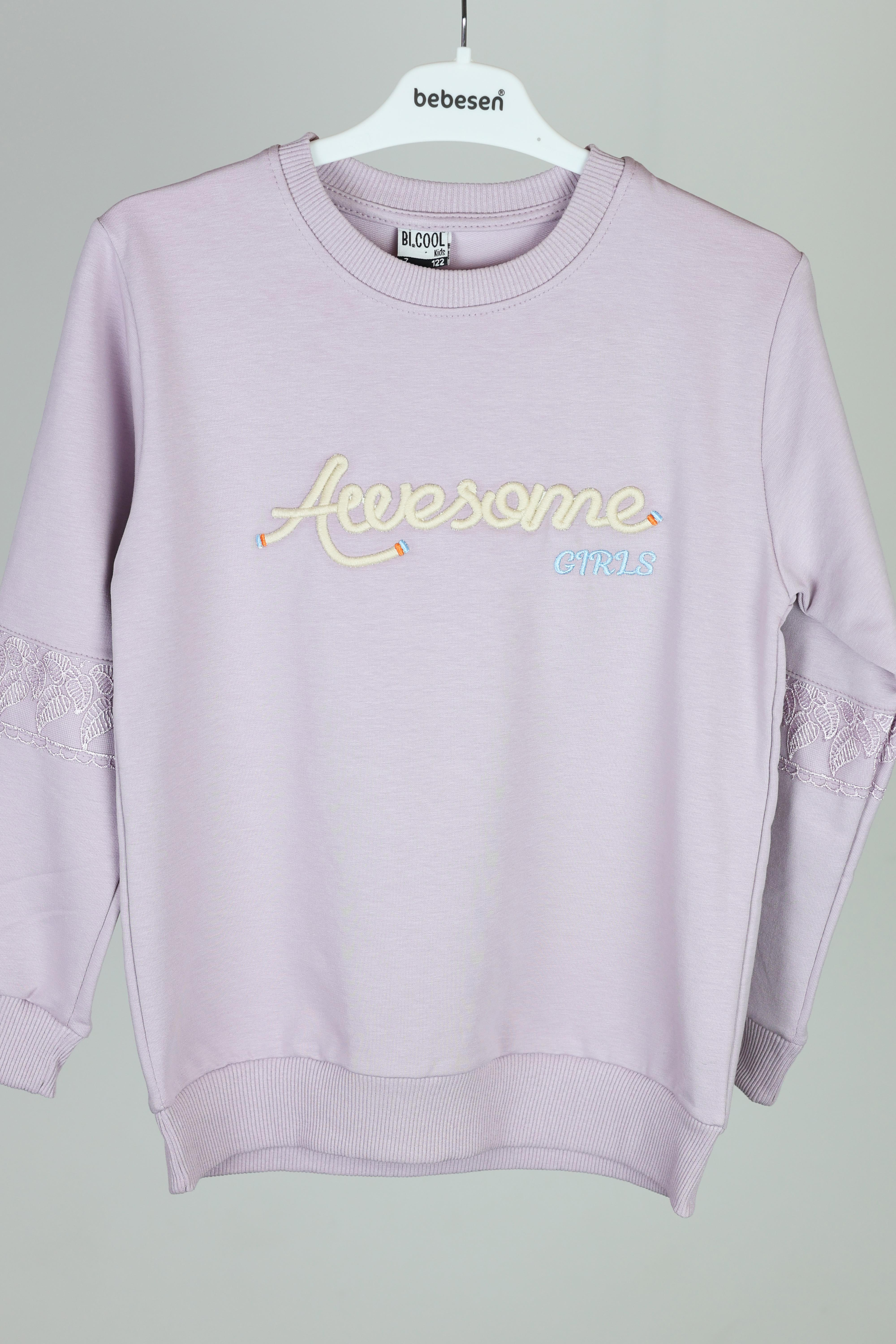 Nakışlı Yazılı Kız Sweatshirt – 5-8 Yaş – Mor