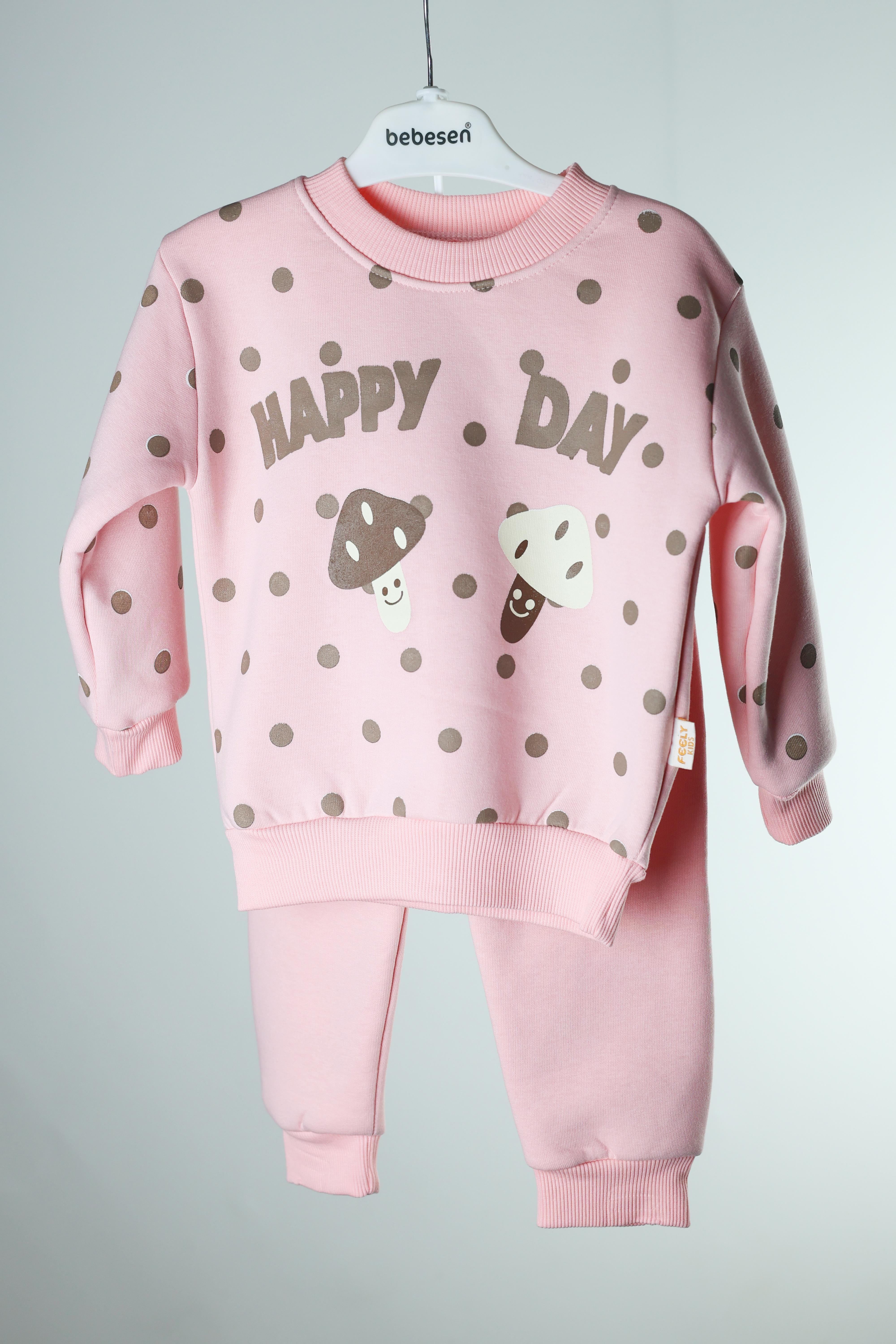 Noktalı Baskılı Kız İkili Takım - 2-5 Yaş - Pembe (1416-5)