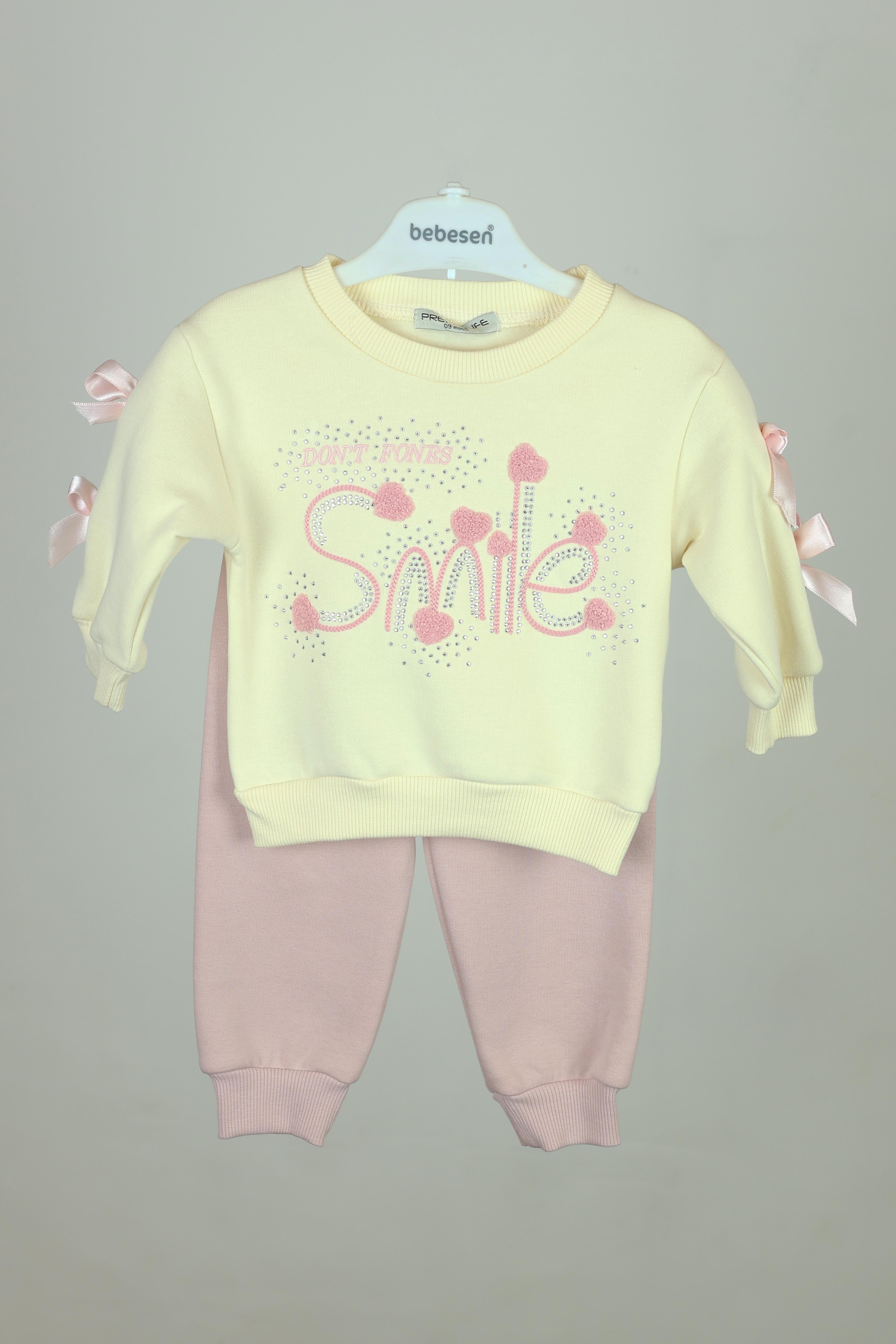 Smile Nakışlı Kurdeleli Kız Bebek Takım - 9-24 AY - Pembe