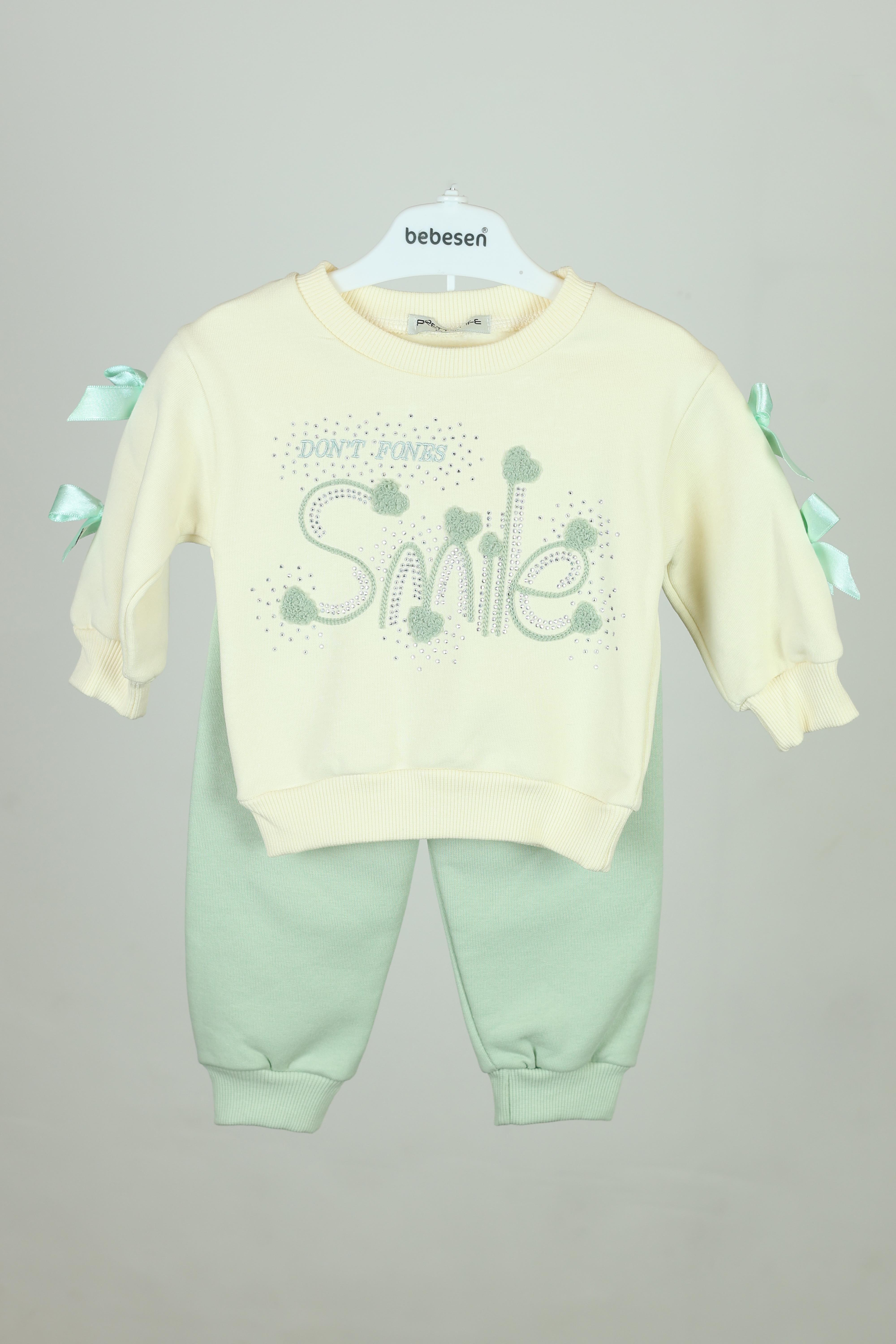 Smile Nakışlı Kurdeleli Kız Bebek Takım - 9-24 AY - Yeşil