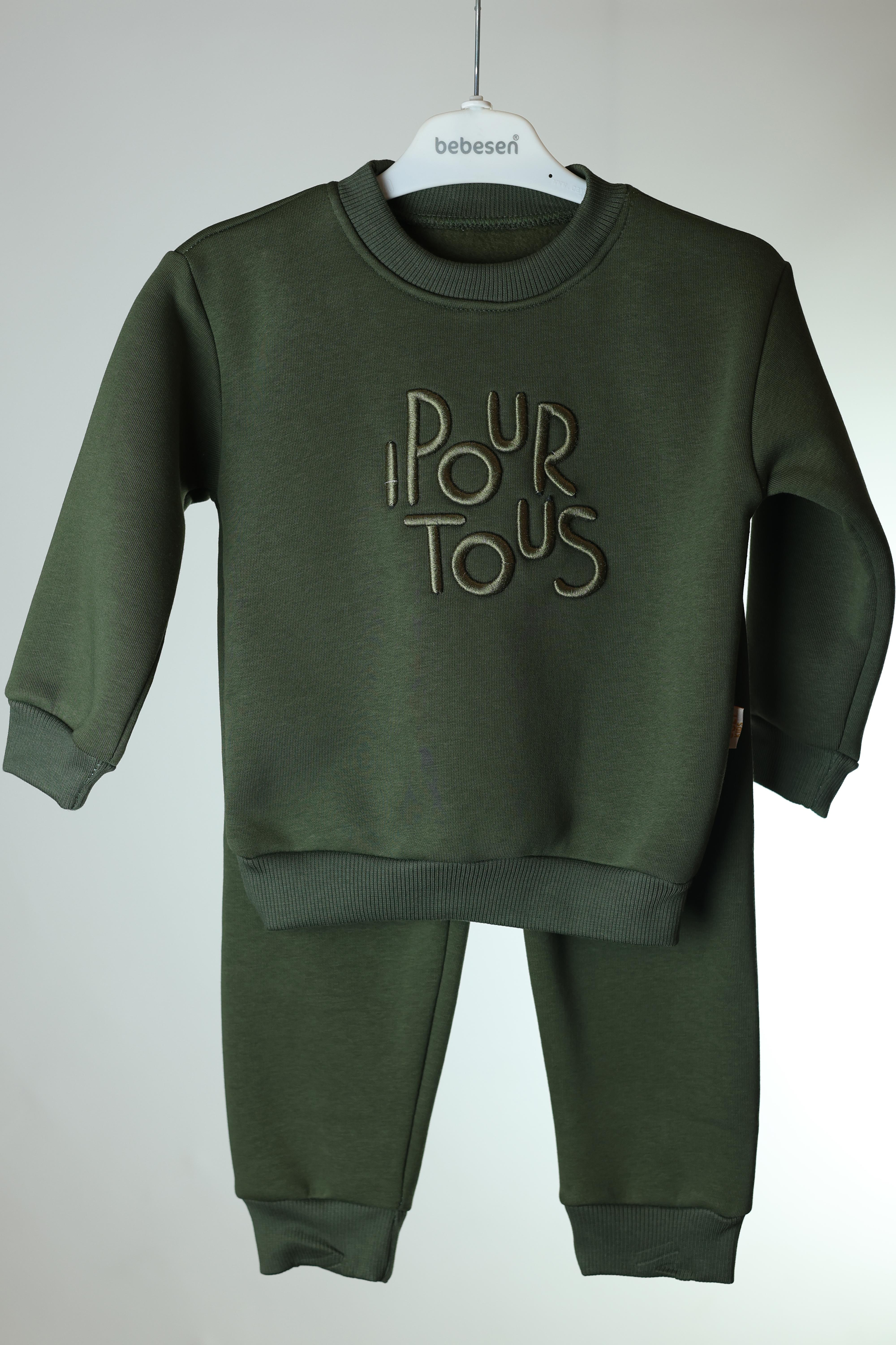 Erkek ÇocukYazılı Nakışlı Uzun Kollu Erkek İkili Takım - 2-5 Yaş - Yeşil